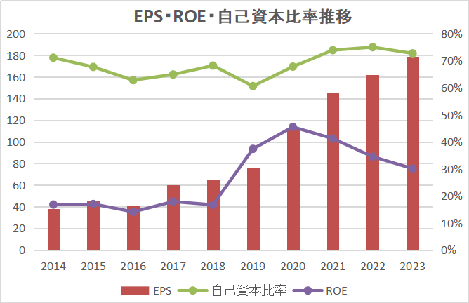 国内企業でもトップクラスの資本効率を誇る、極めて強固な銘柄です。