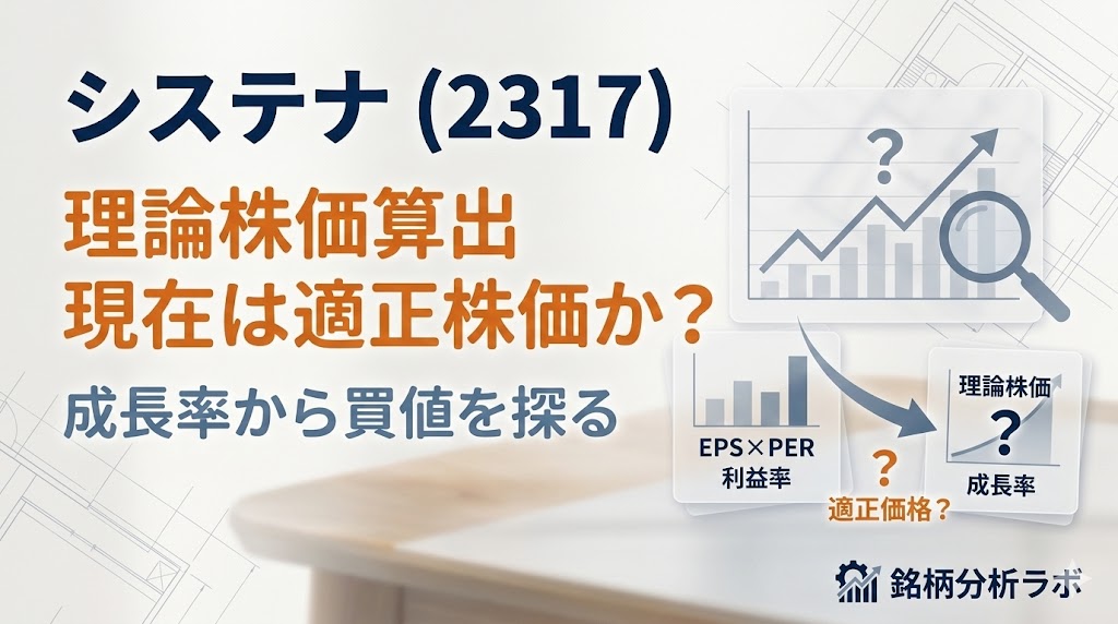 システナ(2317)の2025年3月度までの決算結果から、現在の適正株価及び利回り15%達成のための買値を算出しました。