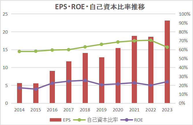 収益性と安全性(EPS、ROE、自己資本比率)